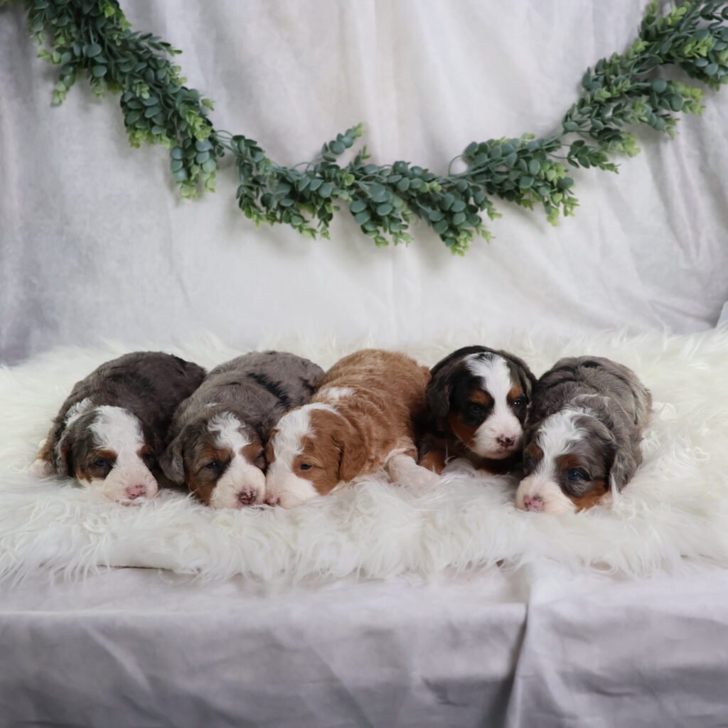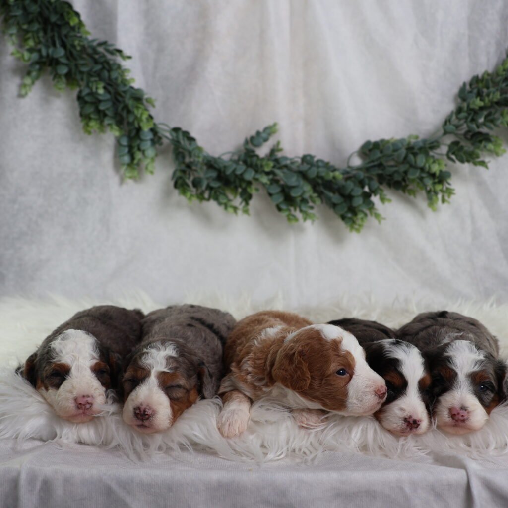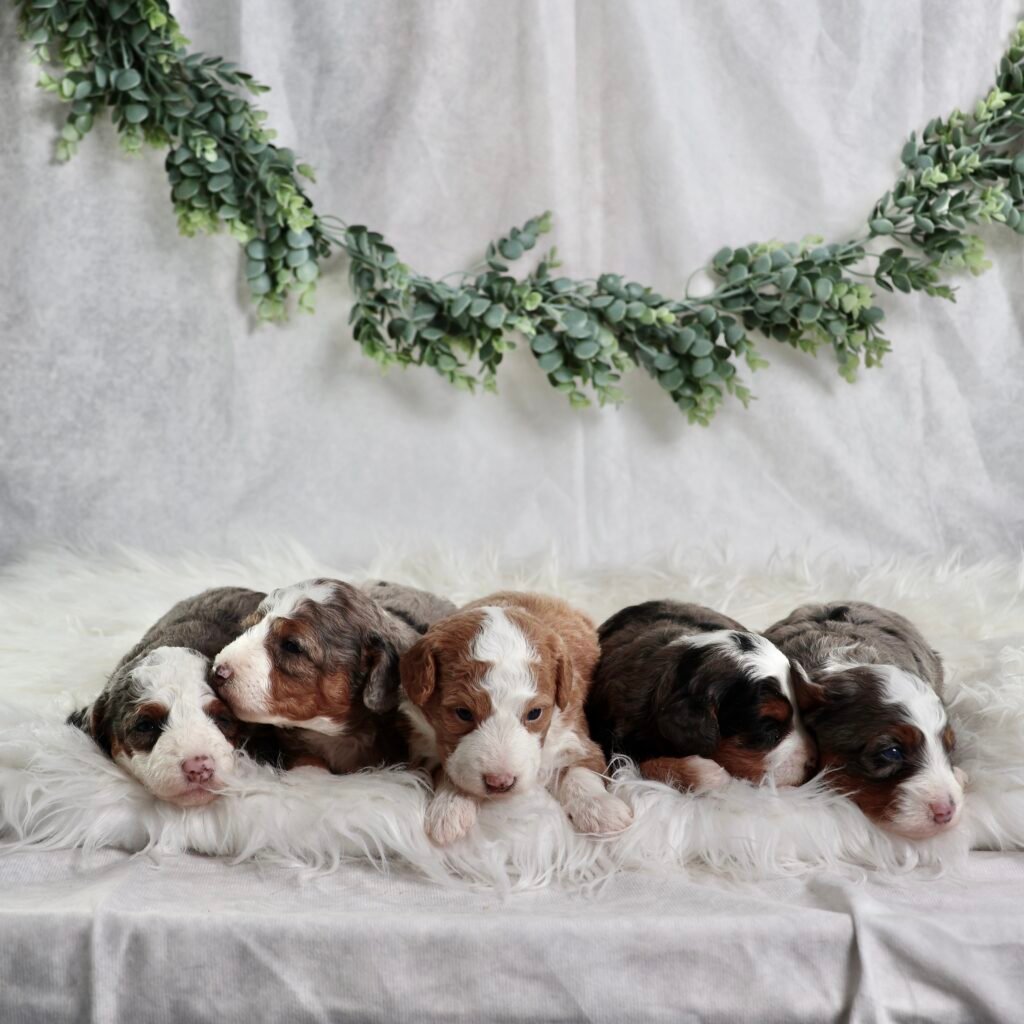We’re committed to providing you with not only a loving companion but also a healthy Micro Bernedoodle puppy. Our breeding program includes rigorous genetic health screenings for all parent dogs. Every puppy undergoes a thorough veterinary examination and is fully vaccinated before coming home with you.