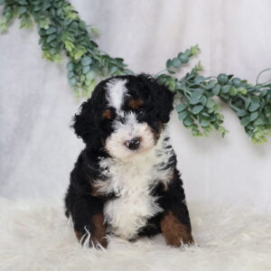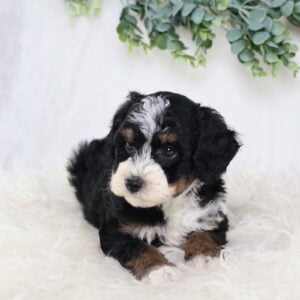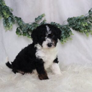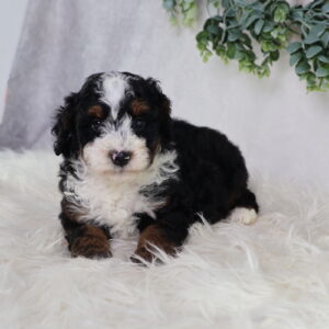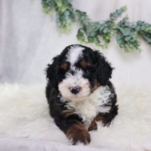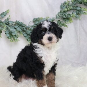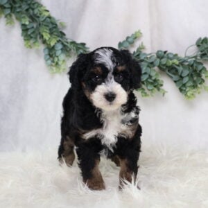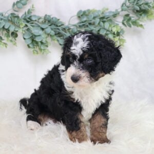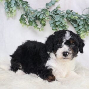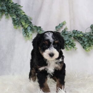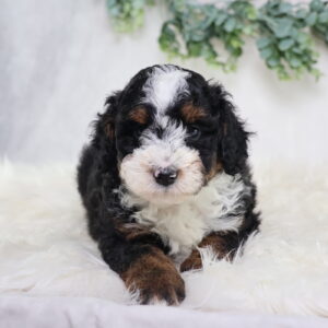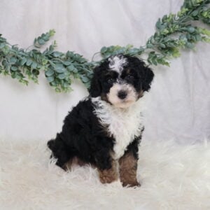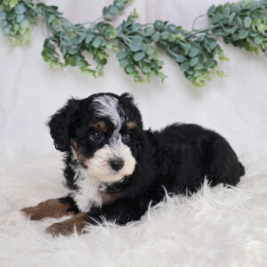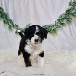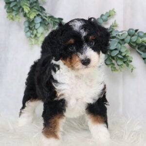 We’re committed to providing you with not only a loving companion but also a healthy Micro Bernedoodle puppy. Our breeding program includes rigorous genetic health screenings for all parent dogs. Every puppy undergoes a thorough veterinary examination and is fully vaccinated before coming home with you.