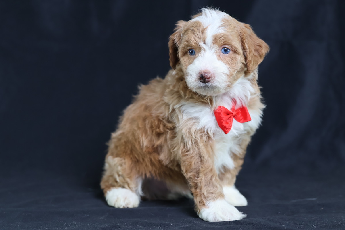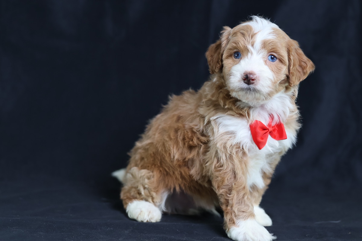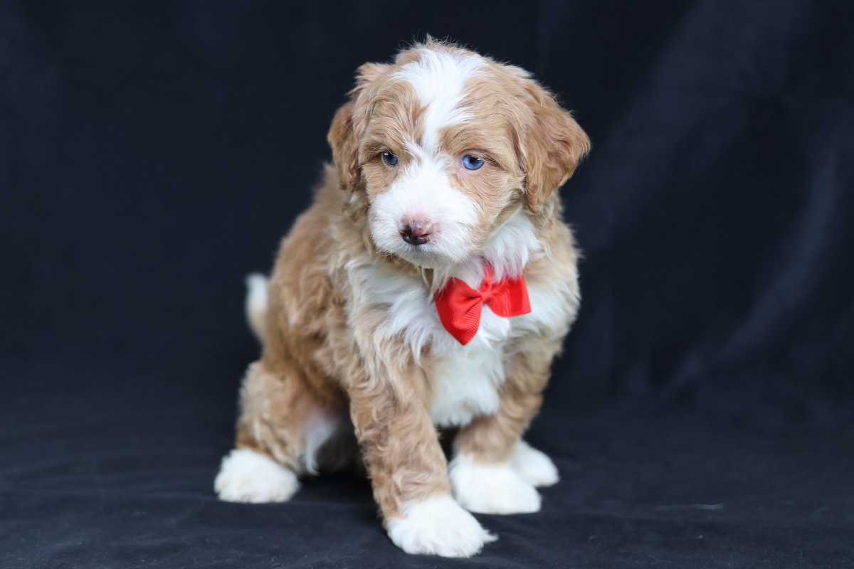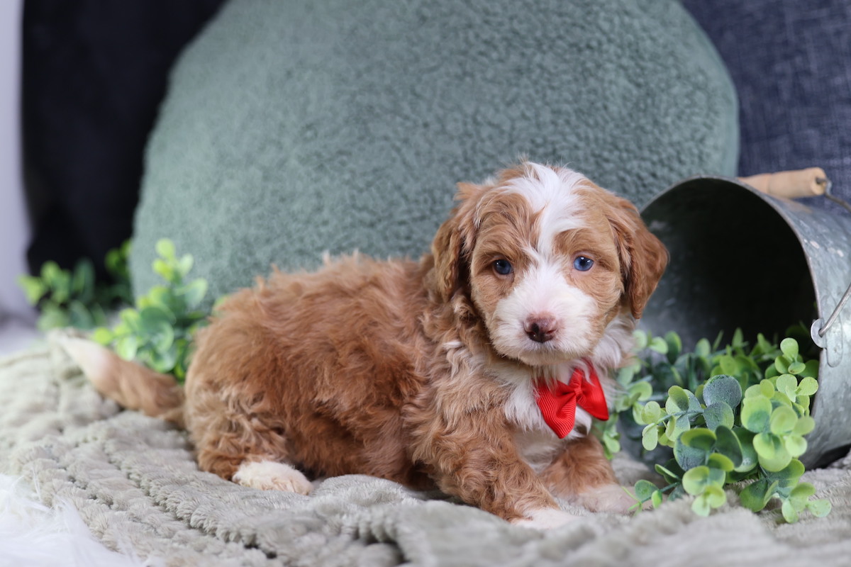 Anthony, a charming micro red tuxedo Bernedoodle, is a true canine artist. His creative nature shines through his playful antics and problem-solving. He’s not just fetching; he’s inventing new ways to play, often using toys in imaginative sequences or “redecorating” his space with a mischievous twinkle. Anthony’s intelligence and unique approach to the world make every day an adventure, proving his clever mind is as captivating as his beautiful coat.