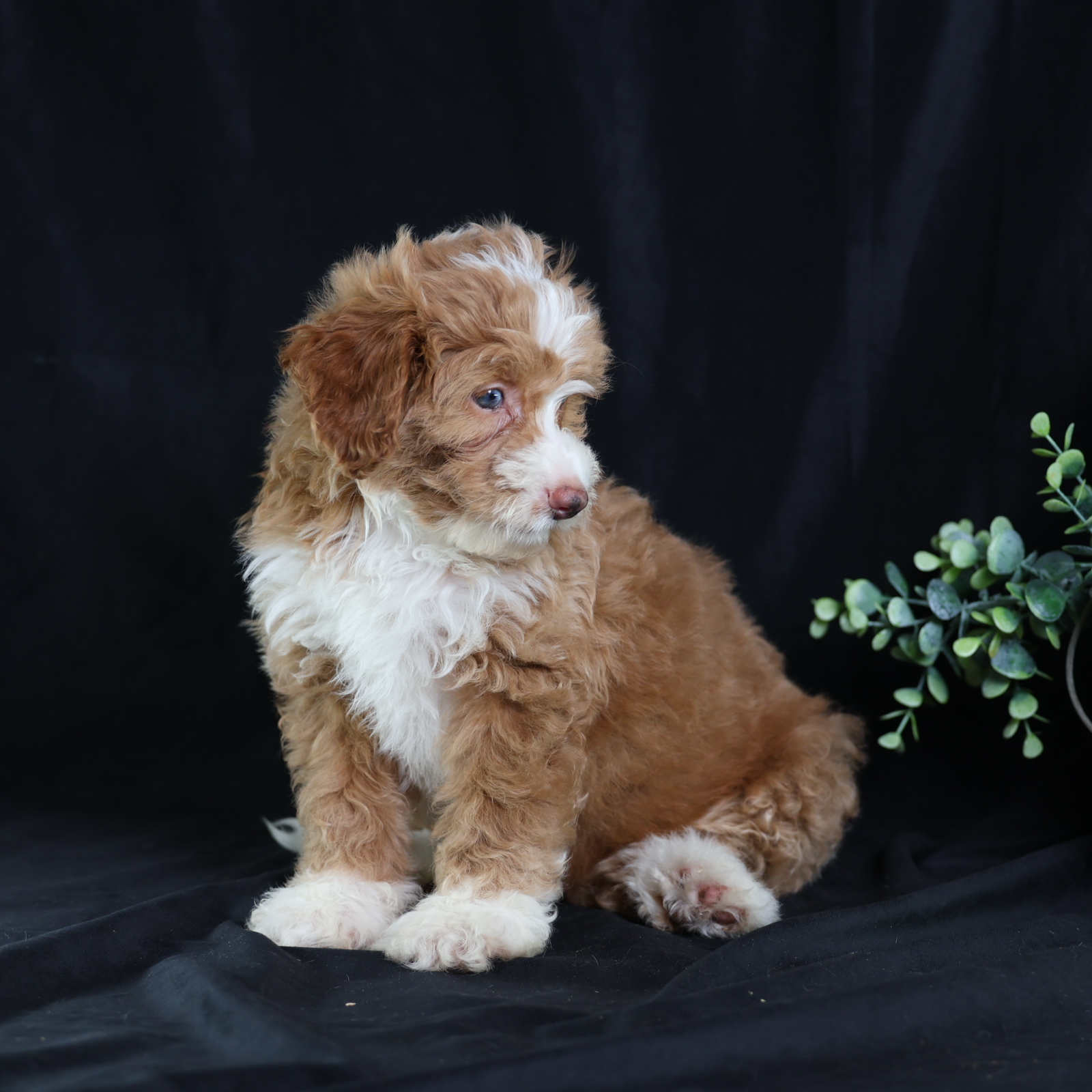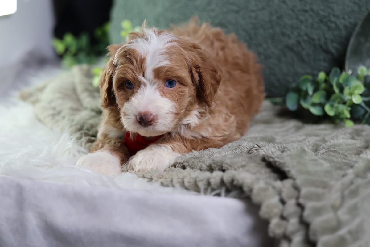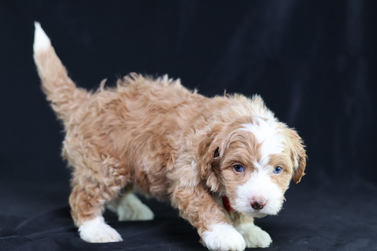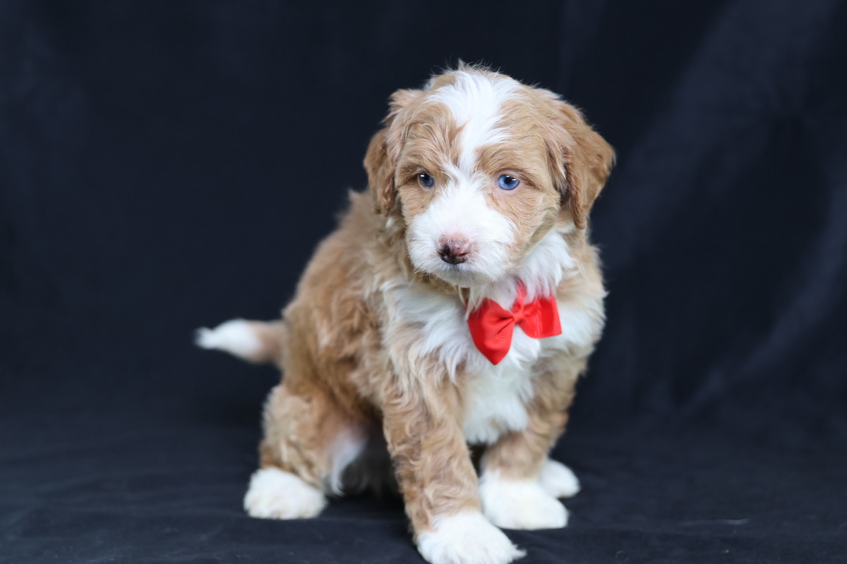 Anthony, a charming micro red tuxedo Bernedoodle, is a true canine artist. His creative nature shines through his playful antics and problem-solving. He’s not just fetching; he’s inventing new ways to play, often using toys in imaginative sequences or “redecorating” his space with a mischievous twinkle. Anthony’s intelligence and unique approach to the world make every day an adventure, proving his clever mind is as captivating as his beautiful coat.