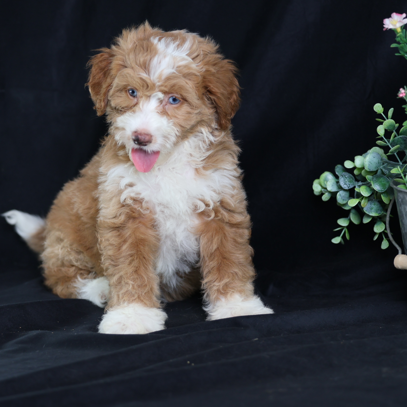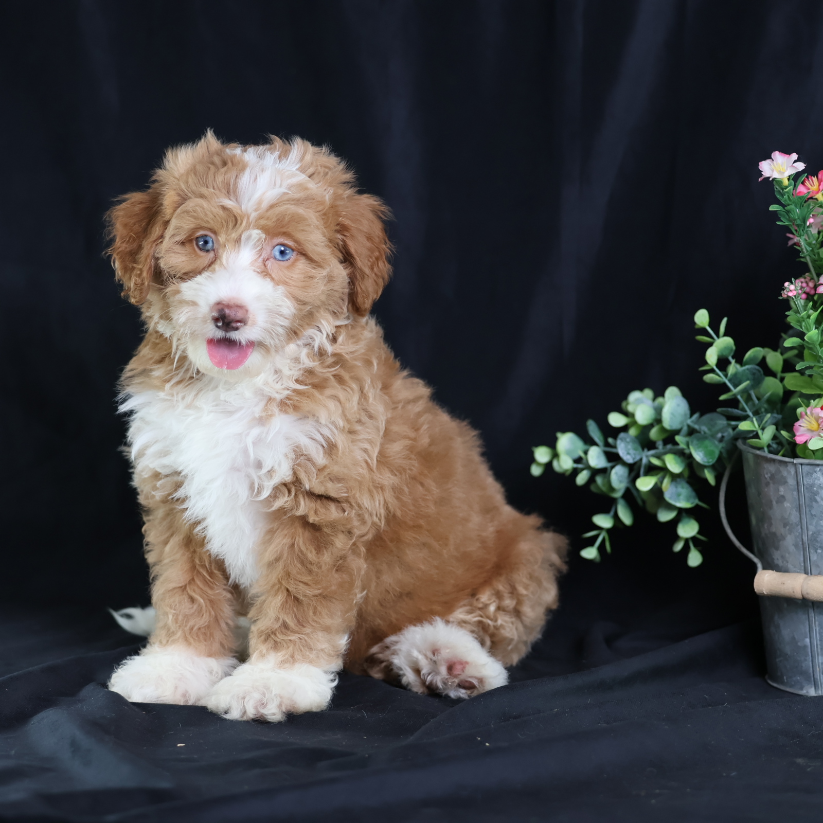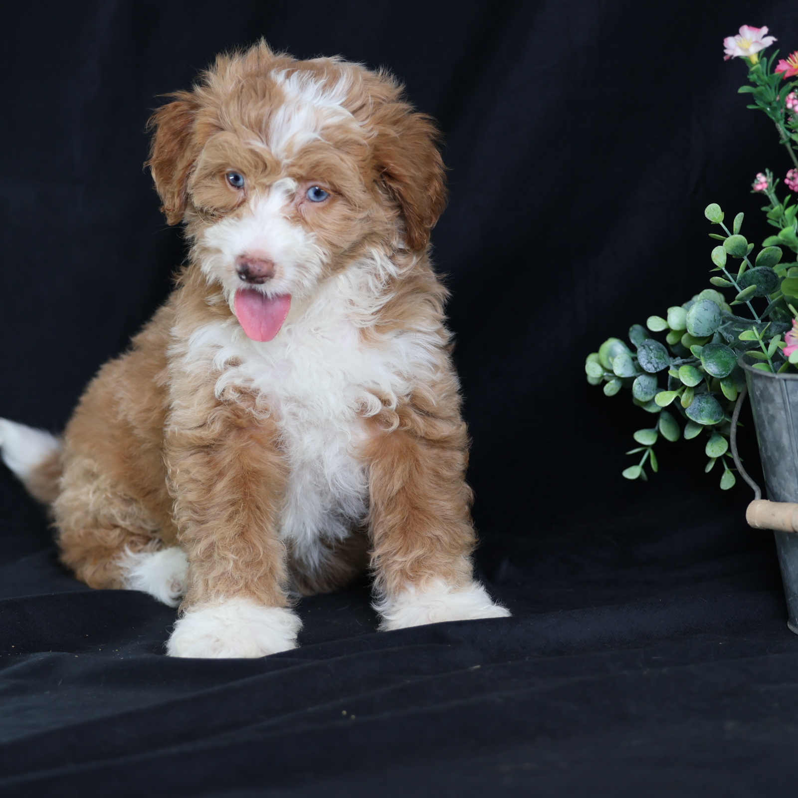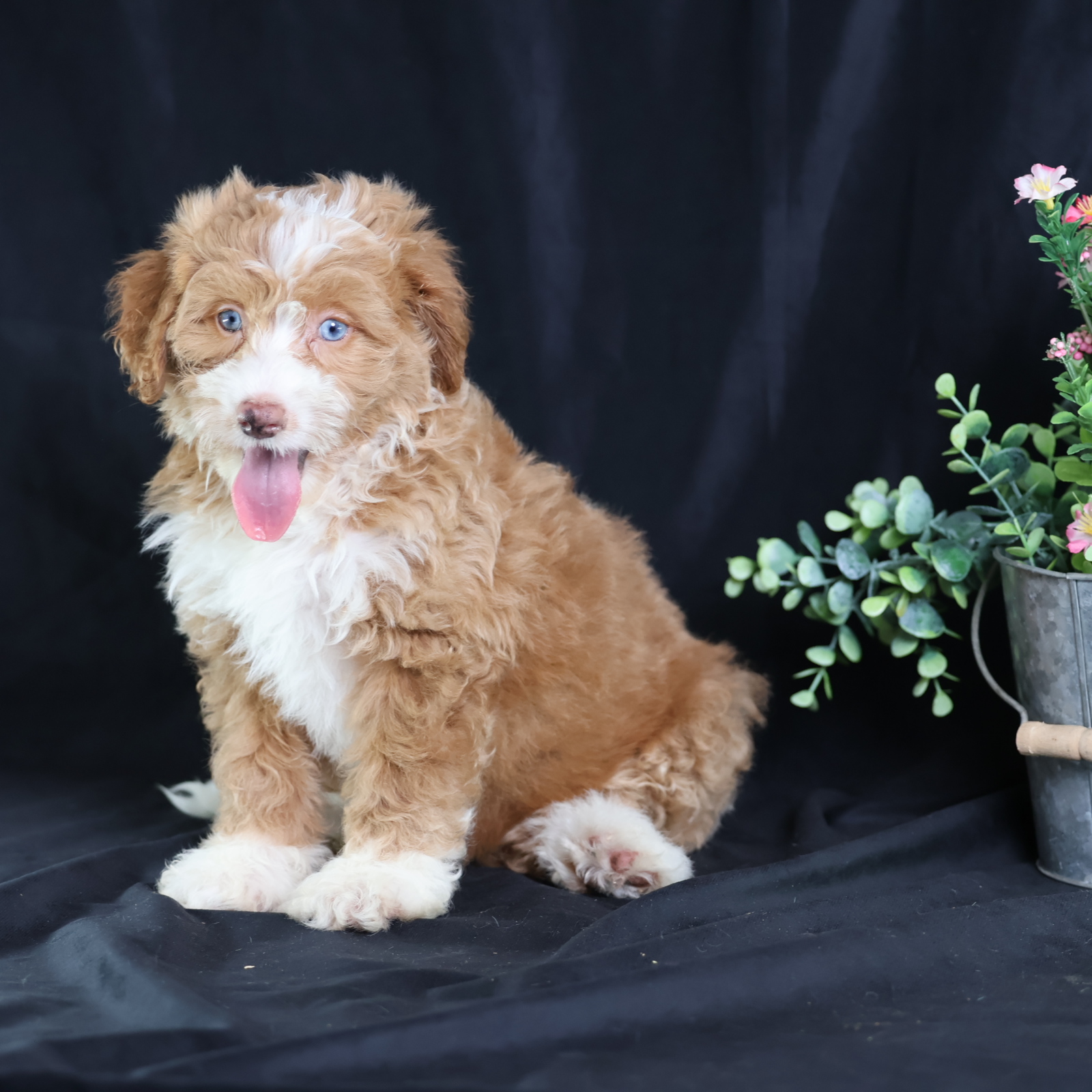 Anthony, a charming micro red tuxedo Bernedoodle, is a true canine artist. His creative nature shines through his playful antics and problem-solving. He’s not just fetching; he’s inventing new ways to play, often using toys in imaginative sequences or “redecorating” his space with a mischievous twinkle. Anthony’s intelligence and unique approach to the world make every day an adventure, proving his clever mind is as captivating as his beautiful coat.