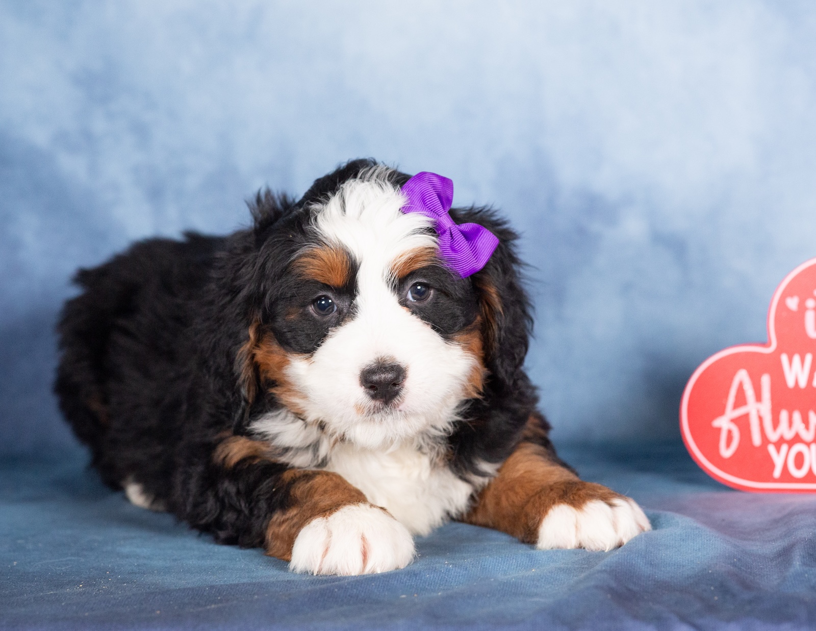 With her timeless tri-color coat and loving nature, Tulip is the perfect blend of beauty and heart. She’s the kind of Bernedoodle who brings comfort, joy, and a calming presence into any home, making everyday moments feel just a little more special.