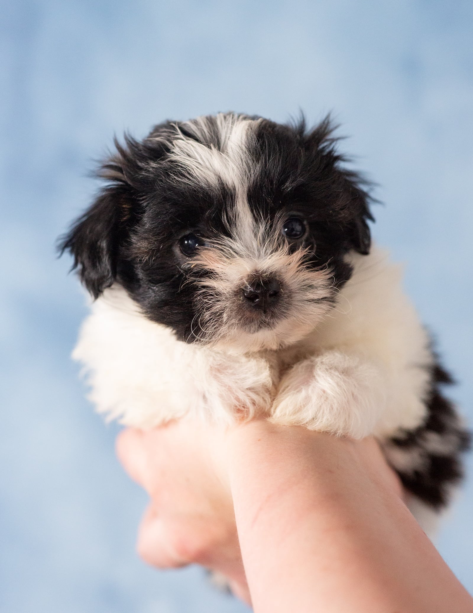Winnieโs black and white coloring paired with her loving temperament makes her both eye-catching and heartwarming. Sheโs a teddy bear pup who offers endless laughter and unwavering affection.