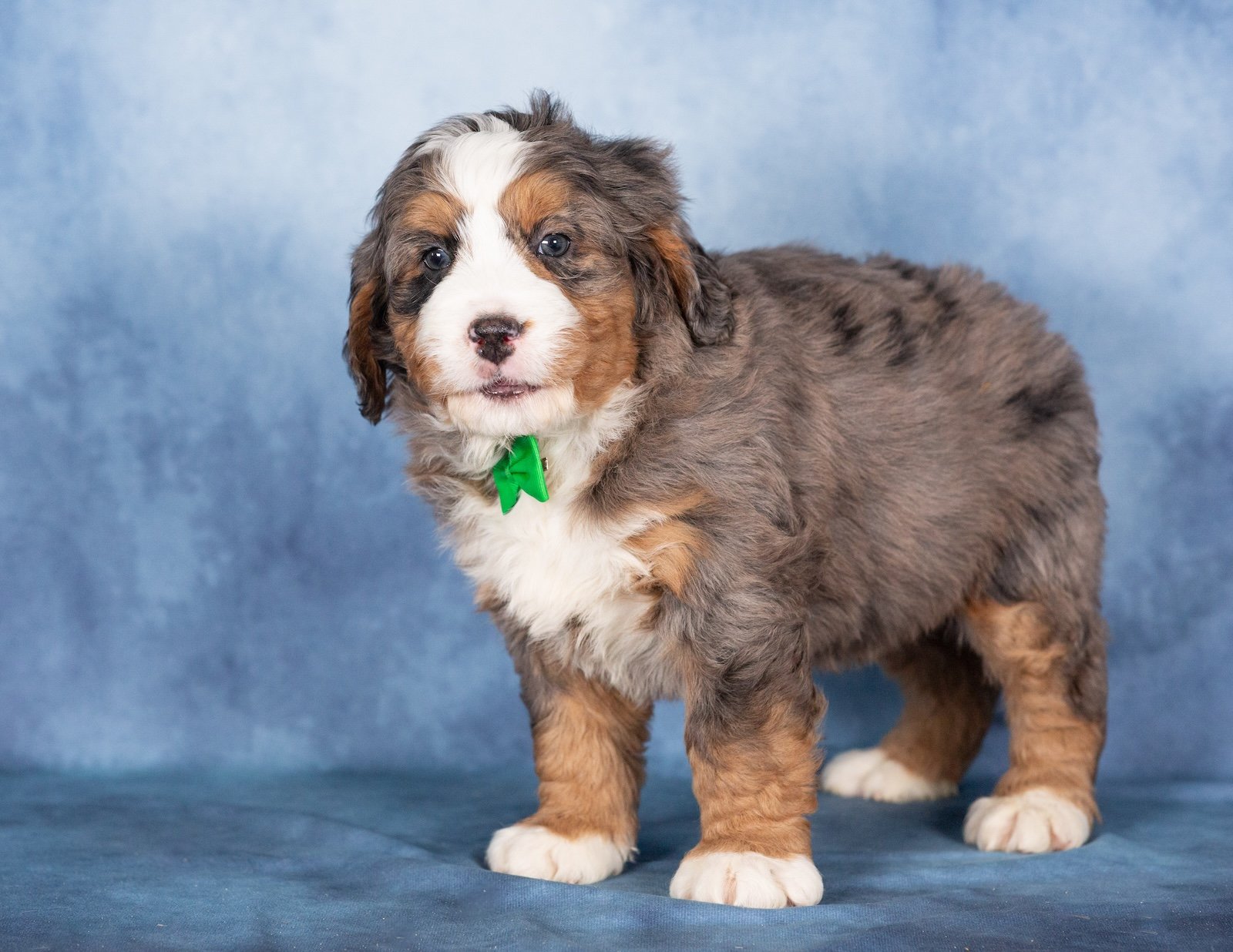 Thanks to their Poodle heritage, Bernedoodles often have low-shedding, “hypoallergenic” coats, significantly reducing dander and airborne allergens. This makes them an excellent choice for many allergy sufferers.