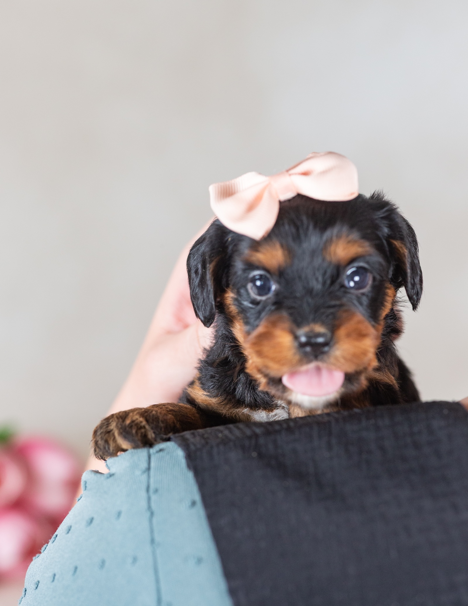 Introducing Gail โ a truly exceptional girl among Munchkin Bernedoodles, wrapped in one of the most eye-catching black tri-color coats you will ever lay eyes on. Her deep, lustrous black base is beautifully contrasted by snow-white markings and rich rust accents, giving her that classic, elegant look that makes the Bernedoodle one of the most sought-after breeds in the world today.