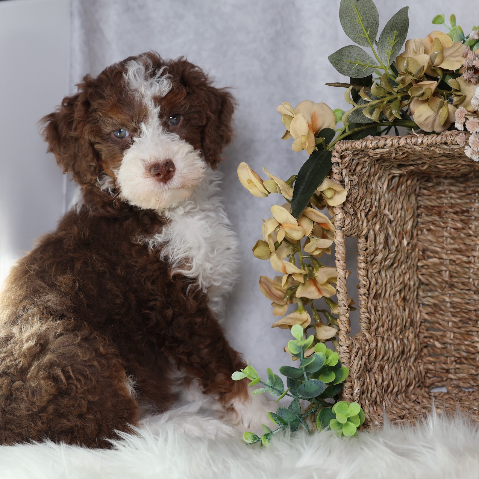 Rusty is a lively, affectionate little guy who fills every room with happiness. His playful personality shines through in his anticsโchasing toys, exploring corners, and discovering new ways to make you laugh. Rusty also has a gentle side, loving nothing more than curling up for cozy snuggles after a fun-filled day. He spreads joy effortlessly, reminding everyone around him that life is brighter with a Bernedoodle by your side. Rustyโs love, laughter, and boundless energy make him a puppy who creates lasting happiness wherever he goes.