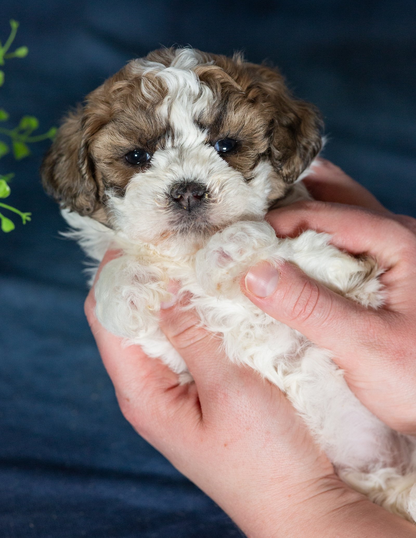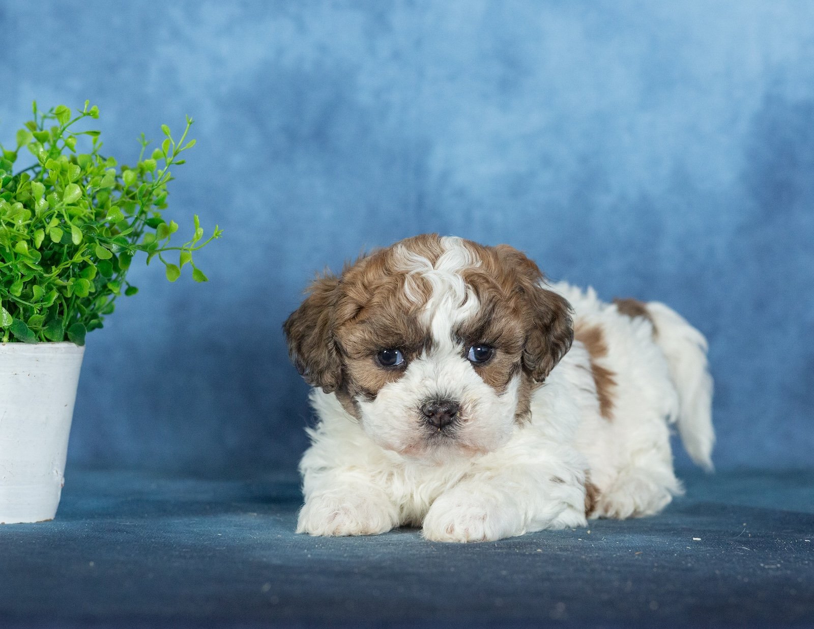 Quilla is pure sweetness with a fluffy brown and white coat and the most lovable teddy bear look. Her warm coloring gives her a cozy, classic puppy appearance, and her soft texture makes her impossible not to cuddle. Quilla has that “pick me up and hug me” vibe that teddy bear puppies are known for.
